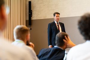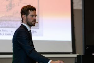 The audience and Chris Gill (Viking)